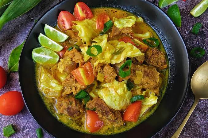 Kecap manis ini menjadi salah satu bahan utama yang memadukan gurihnya kuah gulai dengan potongan daging kambing serta renyahnya kubis dan tomat yang segar.