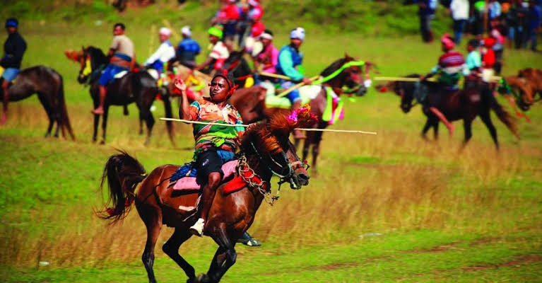 Dalam tradisi Pasola masyarakat Sumba, laki-laki menunggang kuda dan berkelahi satu sama lain dengan tombak kayu - bukan untuk harga diri mereka, tetapi untuk hasil panen masyarakat yang baik. Masyarakat percaya bahwa darah yang tumpah pada upacara tersebut akan membuat tanah lebih subur, oleh karena itu memastikan panen yang baik. Tradisi ini menjadi salah satu daya tarik wisata.