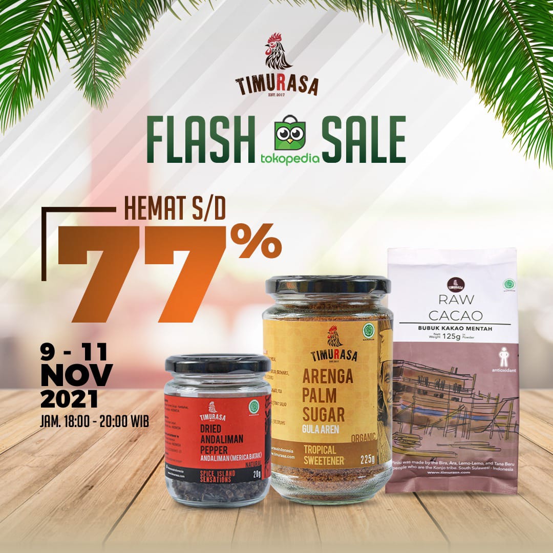 Kisah-kisah budaya Indonesia dalam kemasan terbaru produk Timurasa Indonesia. Kemasan terbaru ini hadir sebagai upaya Timurasa untuk terus berbagi tentang kekayaan kuliner dan budaya Indonesia. Hari ini Timurasa Indonesia kembali ingin membagi semangat tersebut dalam bentuk flash sale dengan diskon hingga 77%. Kunjungi Tokopedia Timurasa Indonesia dan dapatkan produk-produk kegemaran anda: Gula Aren, Raw Cacao, dan Andaliman. Login ke Instagram @timurasaindonesia untuk informasi lebih lanjut.