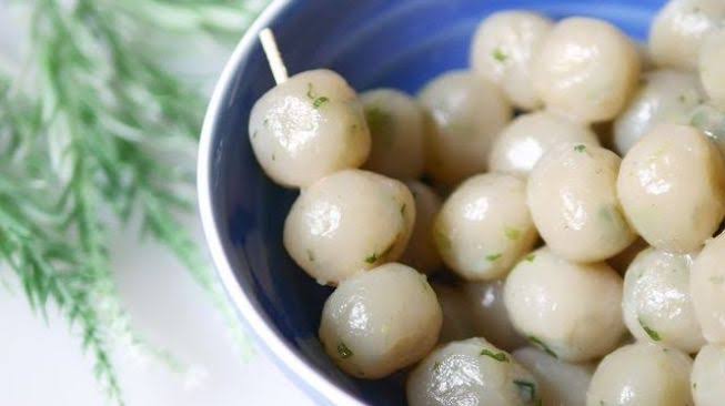 Cilok yang disajikan dalam kuah kaldu dengan penyajian yang mirip dengan bakso.