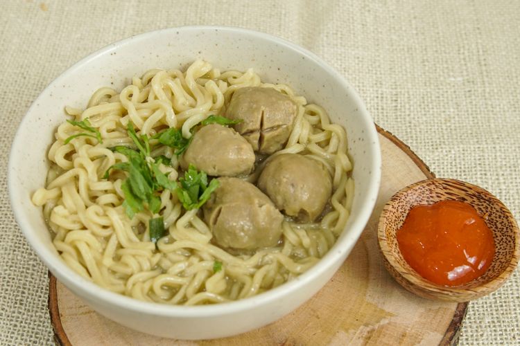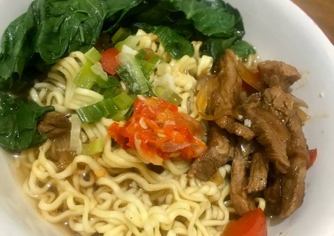Mie putih yang dihidangkan dengan sup dan sayuran. Hidangan adalah salah satu cemilan khas Tiongkok yang paling populer dan sederhana.