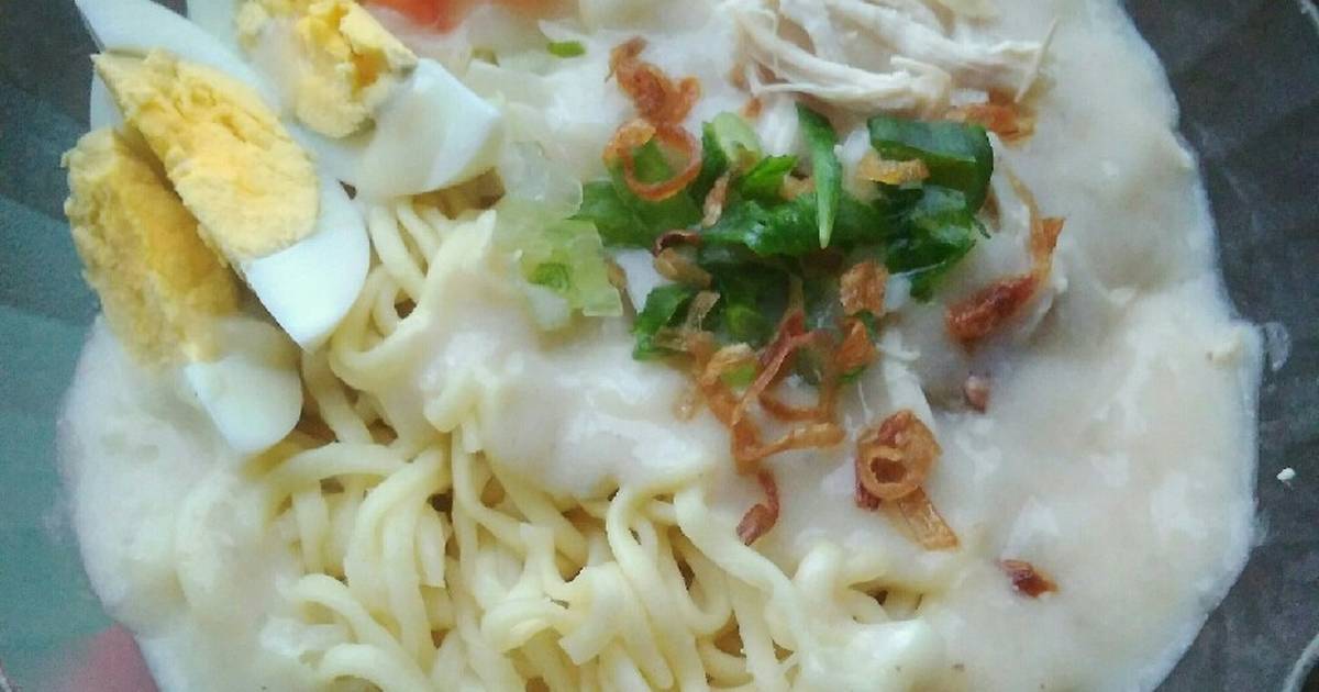 Hidangan soto mie ayam dari Cirebon. Disajikan dengan kubis, tauge, telur rebus, bawang goreng dan daun bawang.