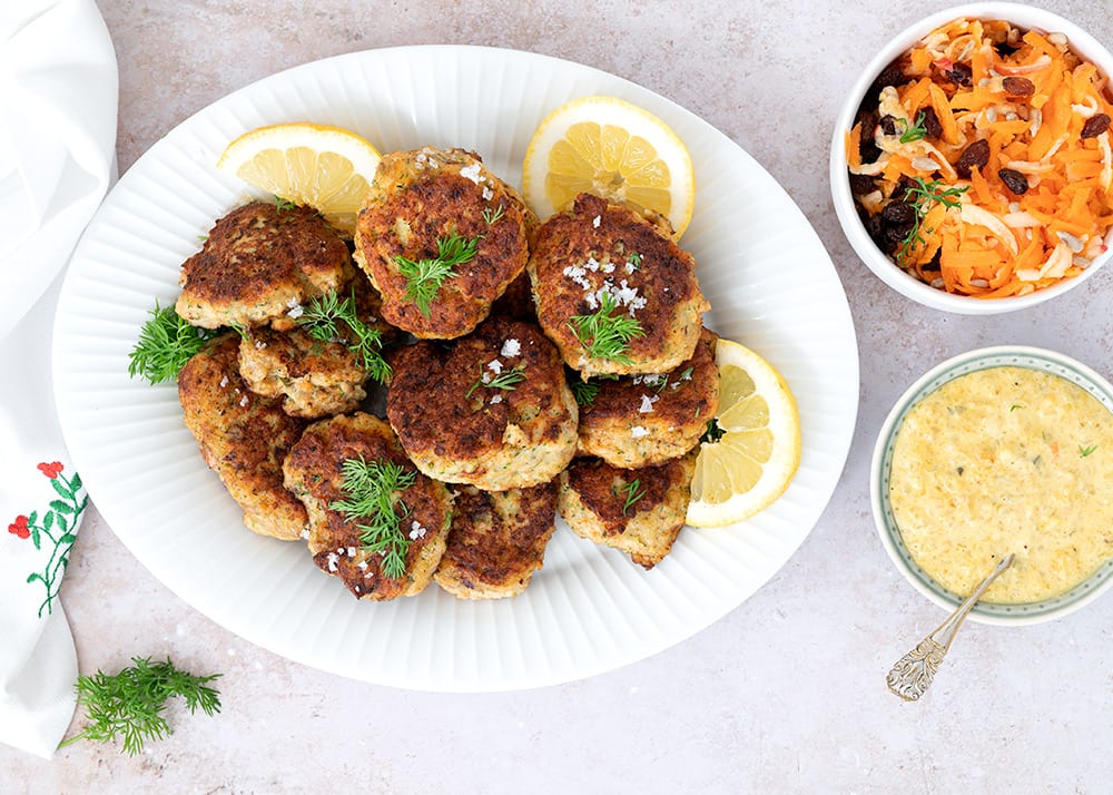 Di Denmark, fishcake disebut sebagai fiskefrikadeller ,memiliki bentuk agak memanjang seperti roti goreng.