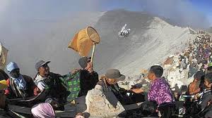 Mereka biasanya mengorbankan beberapa ekor ayam, kambing, dan sayuran dari ladang mereka dengan membuangnya dari puncak gunung ke kawahnya.