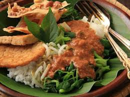 Konsep sajian pecel menyerupai salad bagi orang Eropa. Tak lupa kerupuk dan bakwan sebagai kombinasi lauk pauk yang pas.