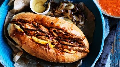 Sepotong tipis daging steak yang telah direndam dalam saus bawang putih ditempatkan di dalam sepotong roti buatan lokal merupakan bahan dasar dari sandwich prego no pão. Di beberapa bagian Portugal, seperti Porto, adalah hal biasa untuk melihat prego no paoatau "com ovo" sebagai menu utama, yang ditambahkan dengan telur goreng di dalamnya