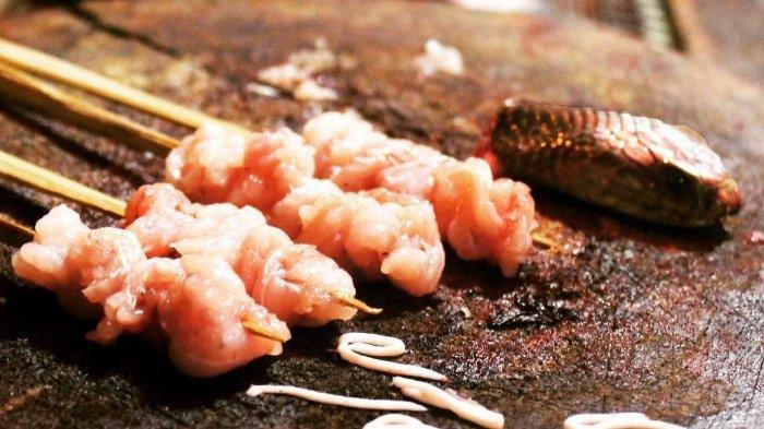 Sate Ular, makanan langka dan eksotis yang biasa ditemukan di warung makan khusus menyajikan daging reptil eksotis seperti ular dan biawak, seperti yang ditemukan di dekat stasiun kereta Gubeng di Surabaya, atau di dekat stasiun kereta Mangga Besar dan Tebet di Jakarta. Biasanya daging ular sendok (cobra) atau sanca (python). Disajikan dengan irisan bawang merah segar, acar, merica, dan kecap manis.