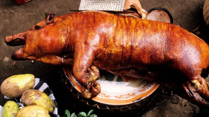 Menjelang Natal pesanan makanan ini melonjak drastis. Babi putar dihargai sesuai dengan berat babi.