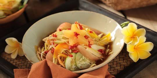 Jika Anda penggemar salad buah, mencoba Rujak Kuah Pindang atau Rujak Gelogor sangat disarankan. Hidangan segar ini mencakup berbagai buah-buahan tropis seperti mangga mentah, nanas, buah bengkoang, mentimun, dan apel air. Yang membuatnya istimewa adalah saus pedas yang terbuat dari ikan pindang, cabai merah, dan terasi.