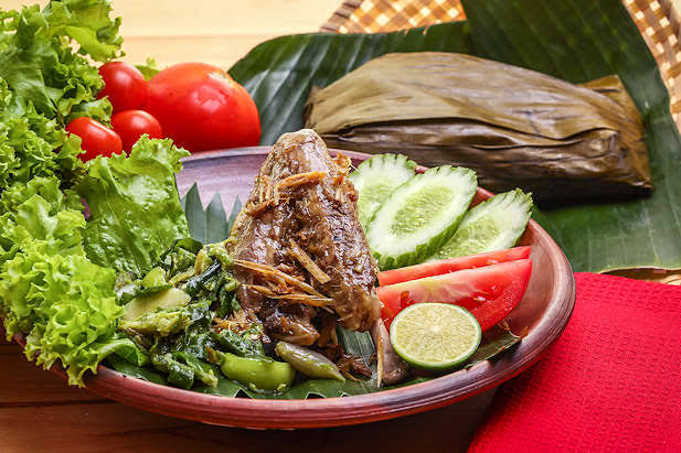 Untuk menambah cita rasa, beberapa pendamping seperti ikan asin goreng, tempe goreng, lombok hijau, dan kuah lodeh ditambahkan. Meski terlihat sederhana, hidangan ini sangat memanjakan lidah Anda.