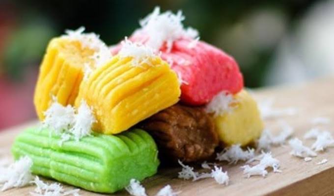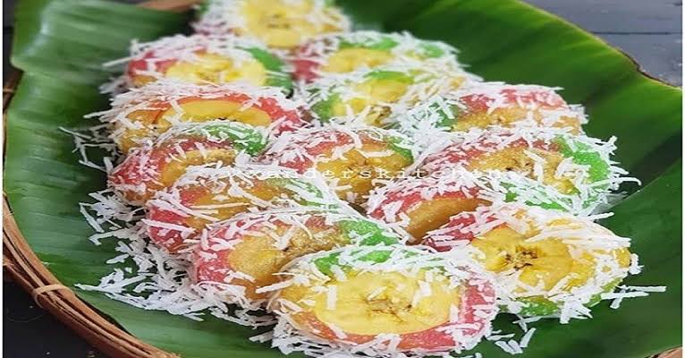 Seperti cenil, adonan singkong ini dibuat warna-warni dengan pewarna makanan dan dilengkapi dengan taburan kelapa parut yang bersalju.