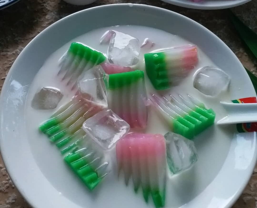 Merupakan makanan dengan bahan dasar tepung beras dan tepung hunkwe. Selendang Mayang disajikan dengan santan dan es serut. Rasanya lezat dan menyegarkan.