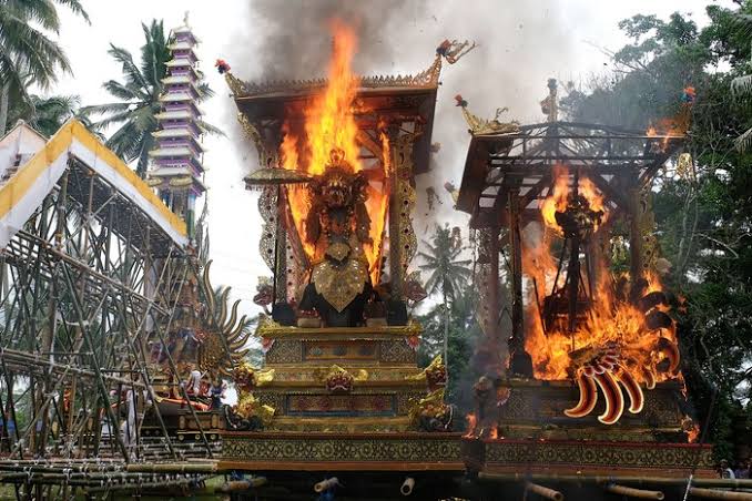 Mayoritas masyarakat Bali beragama Hindu. Mereka percaya bahwa almarhum harus dibersihkan dengan api sebelum dikirim ke nirwana.
